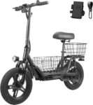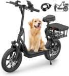 Equipped with a 400W motor and 14″ pneumatic tires, this scooter delivers smooth rides up to 15.5 mph, even on rough terrain.