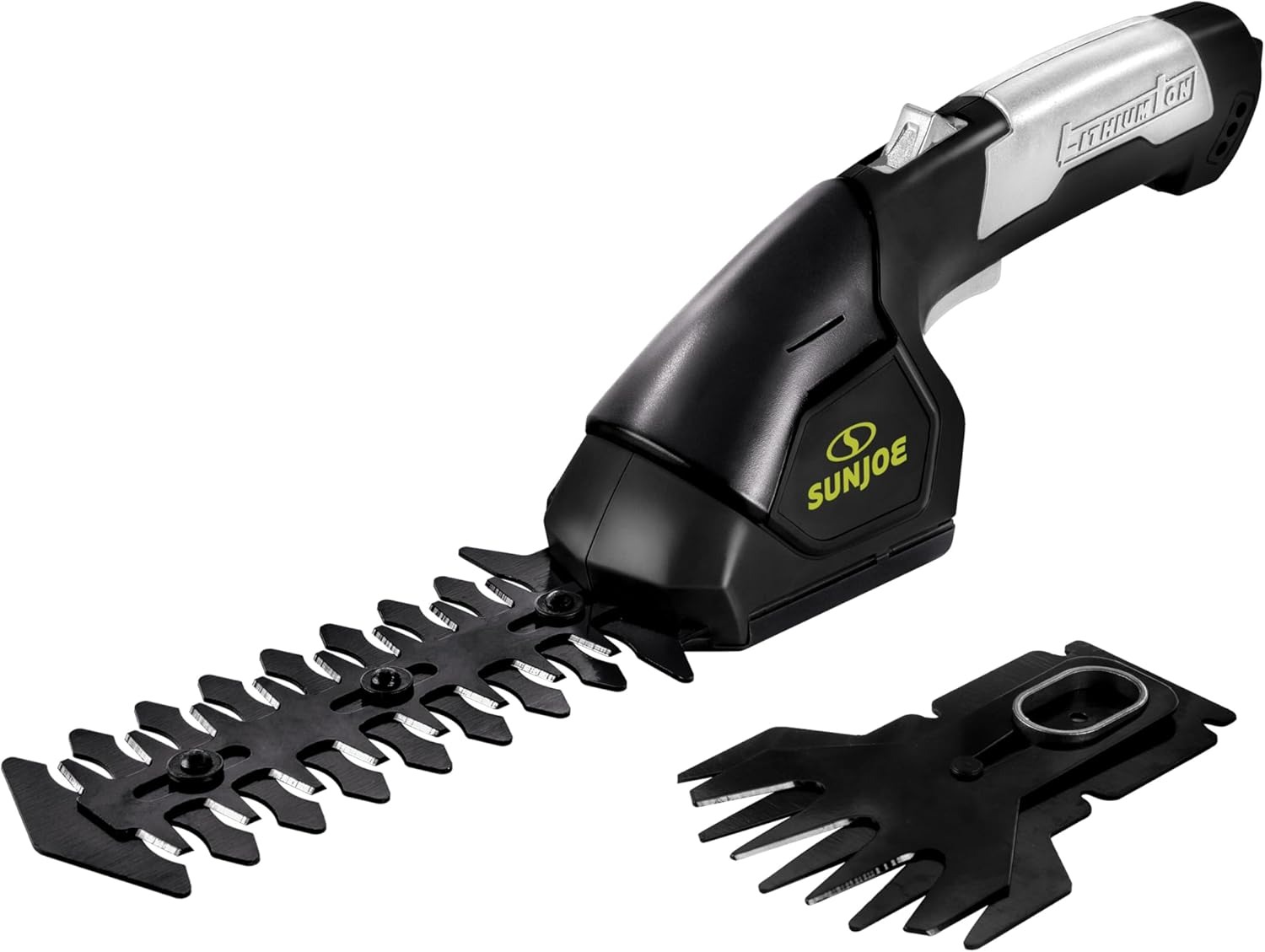 2-in-1 tool with grass and shrub blades.7.2V rechargeable battery.