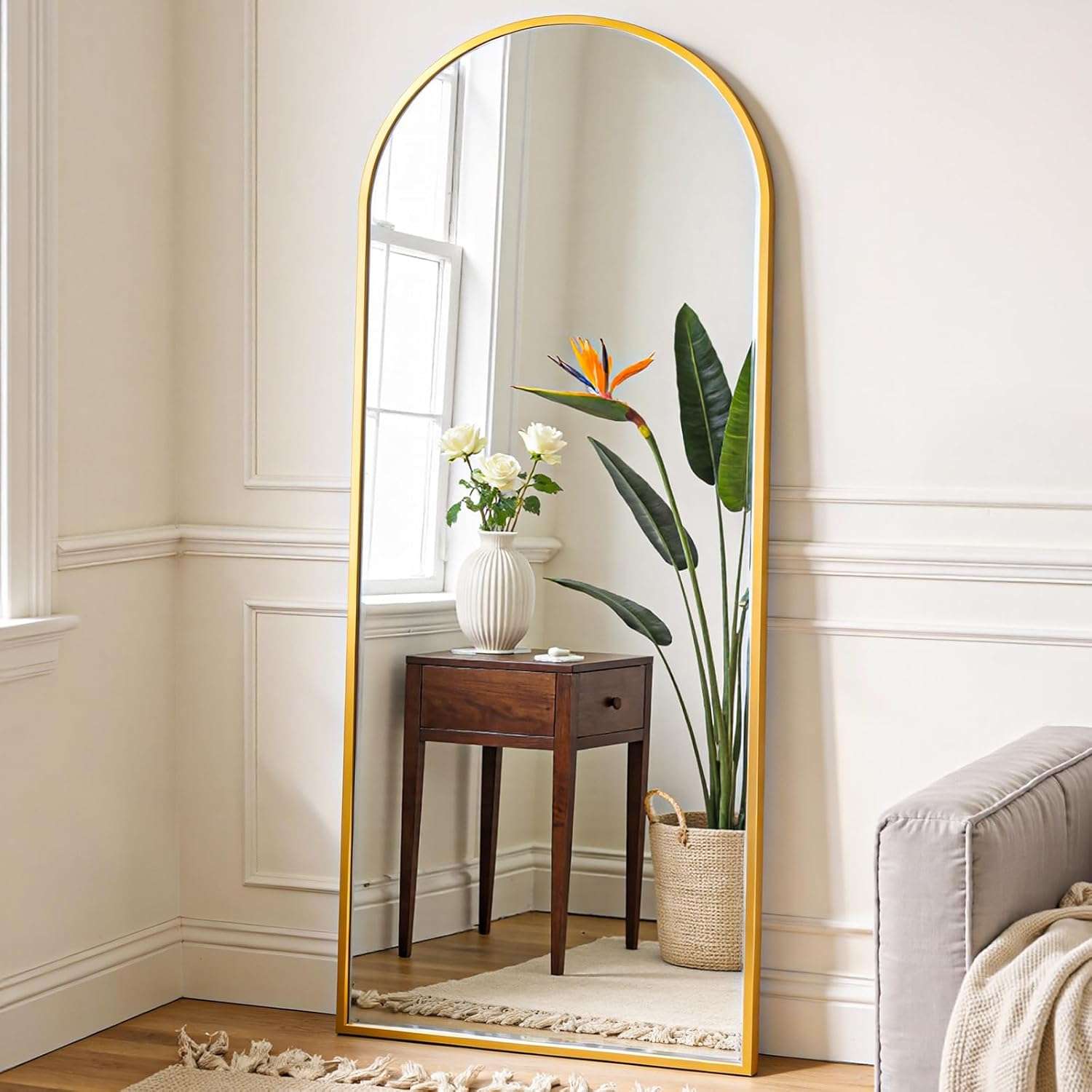 Arched top design with brushed metal frame.High-definition glass for clarity.
